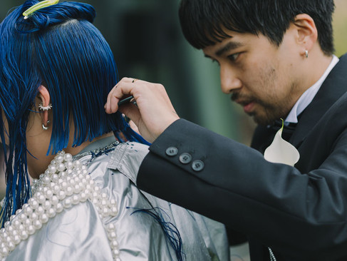 個性的なおしゃれを軽やかに楽しむRanさんは、打ち合わせでお会いするたびにヘアカラーが変わっていて——それはJumpeiさんの仕事をそばで支えるからこそ生まれる、“らしさ”のひとつでもありました。